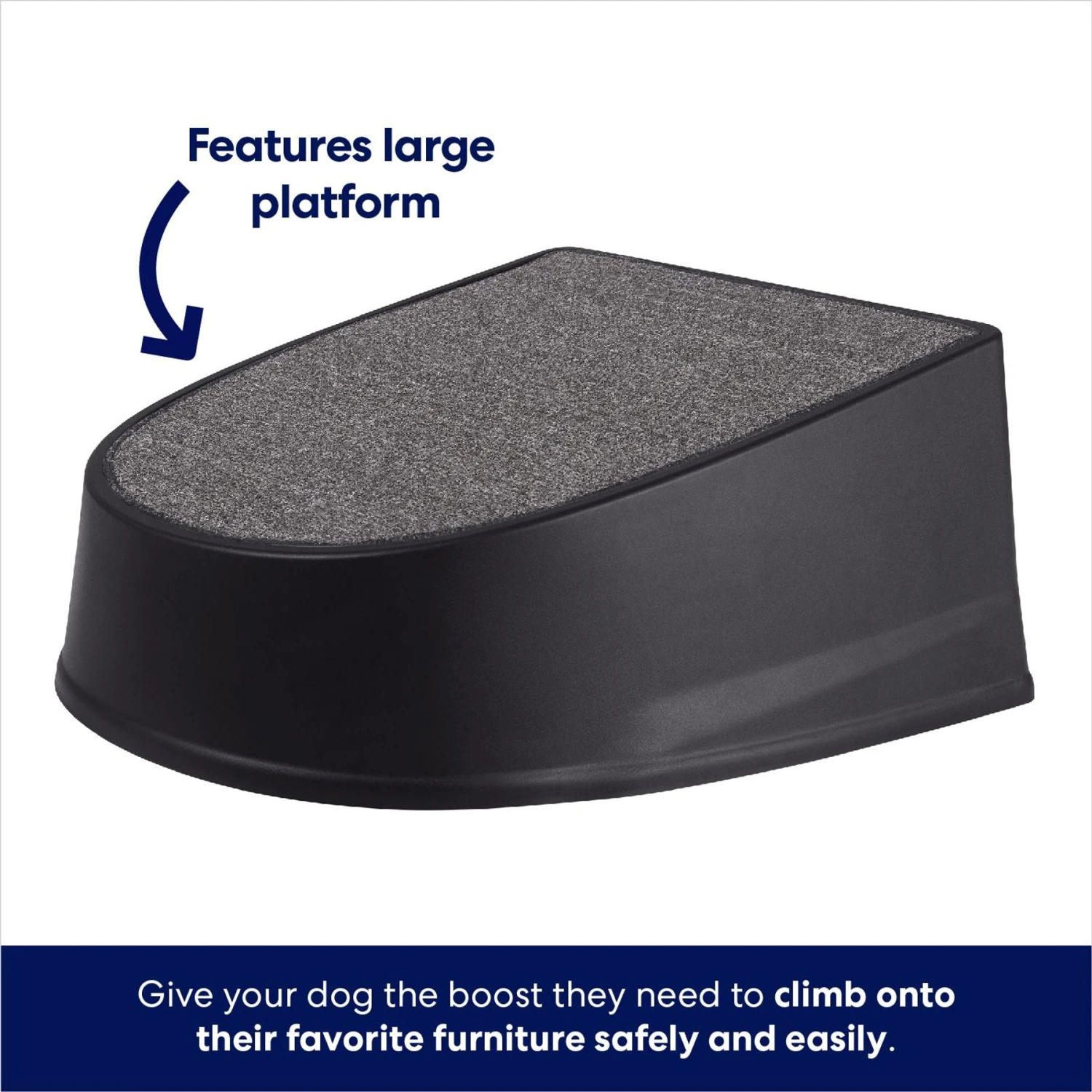 - The large platform offers plenty of stability and surface area for your pet to find their footing as they climb up to higher ground.