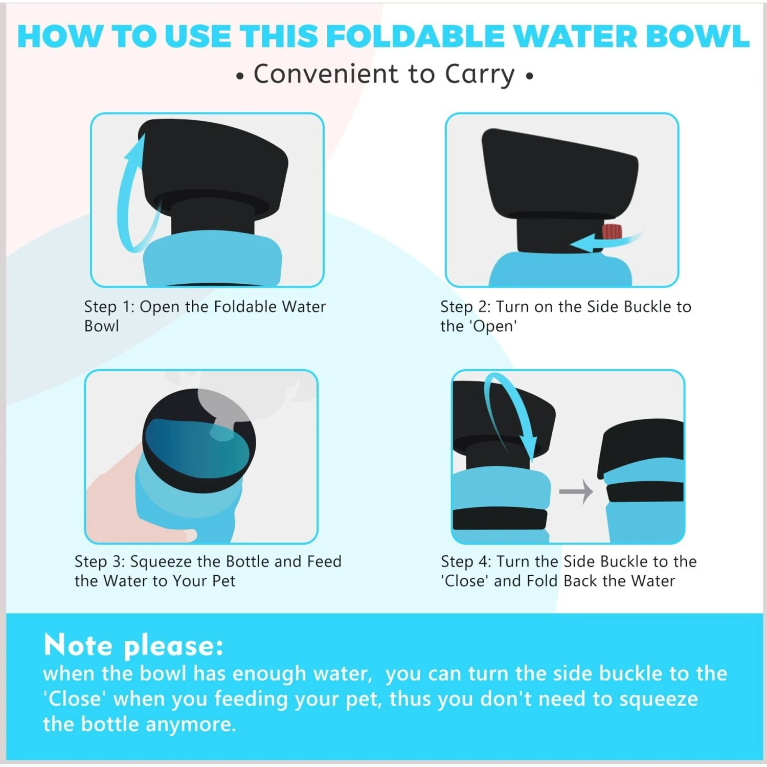 - Features a leakproof, water-saving design that allows you to squeeze water out when needed.