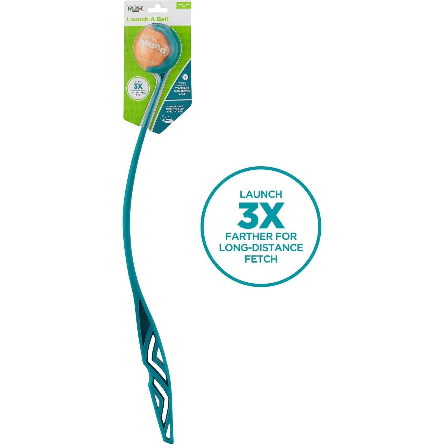 - Launches your dog’s ball up to three times farther.